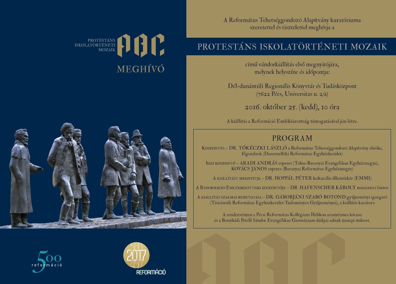 A Protestáns iskolatörténeti mozaik című vándorkiállítás első megnyitója Pécsett lesz, október 25-én 10 órától.
